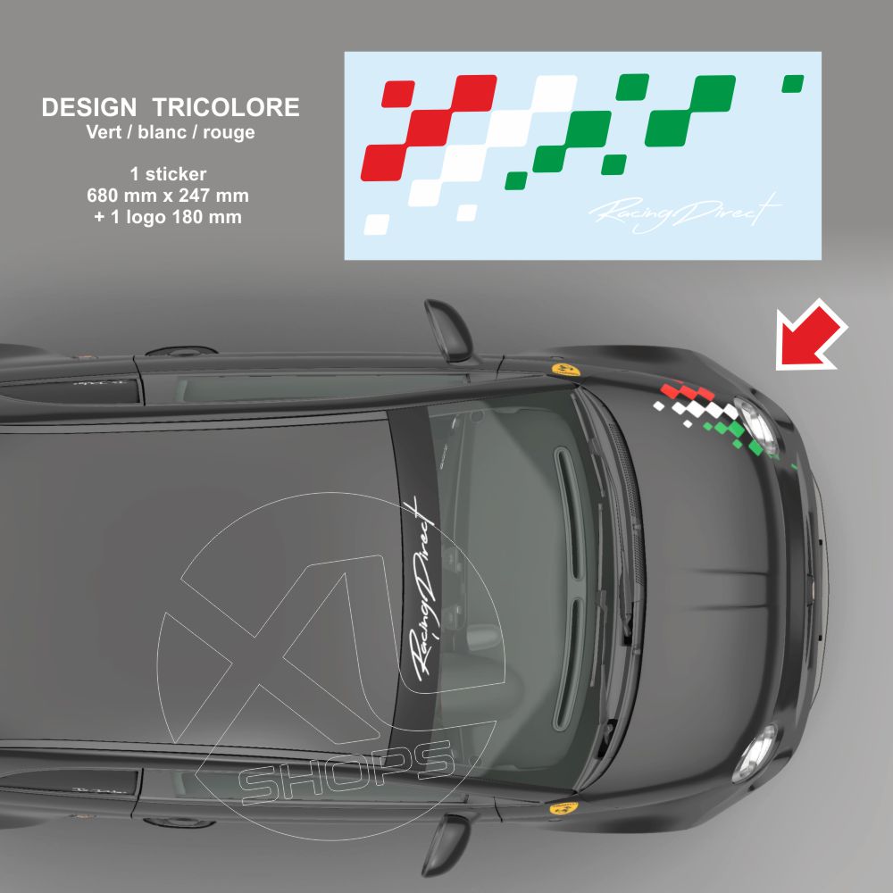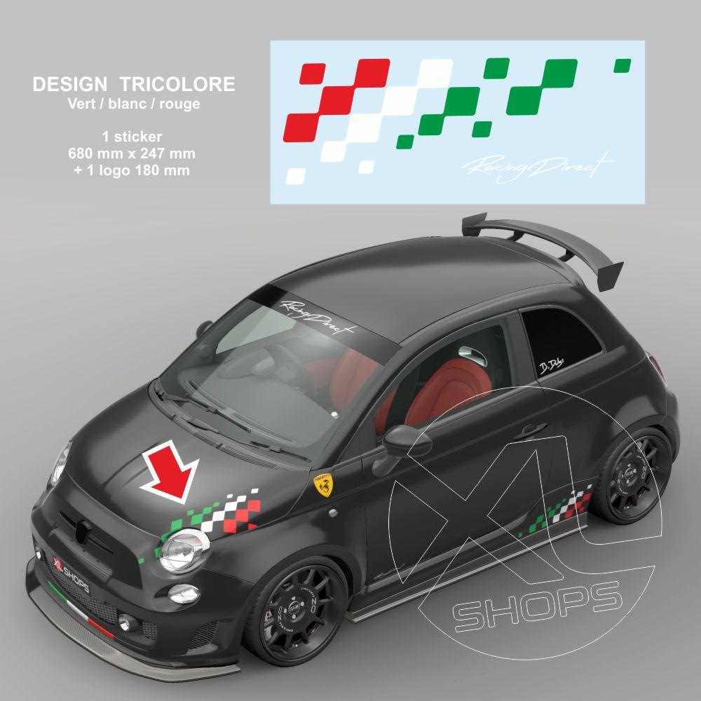1 tricolour FIAT ABARTH chequered flag sticker decal for bonnet 68 cm