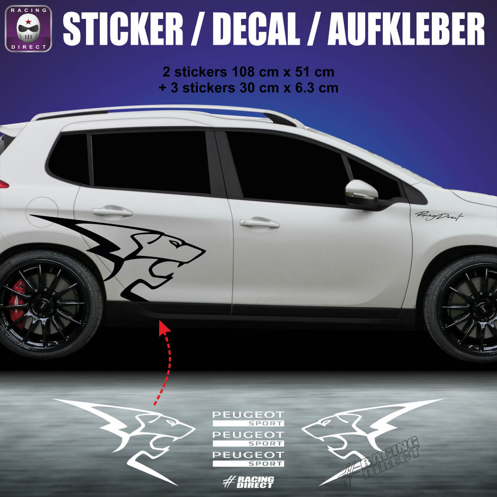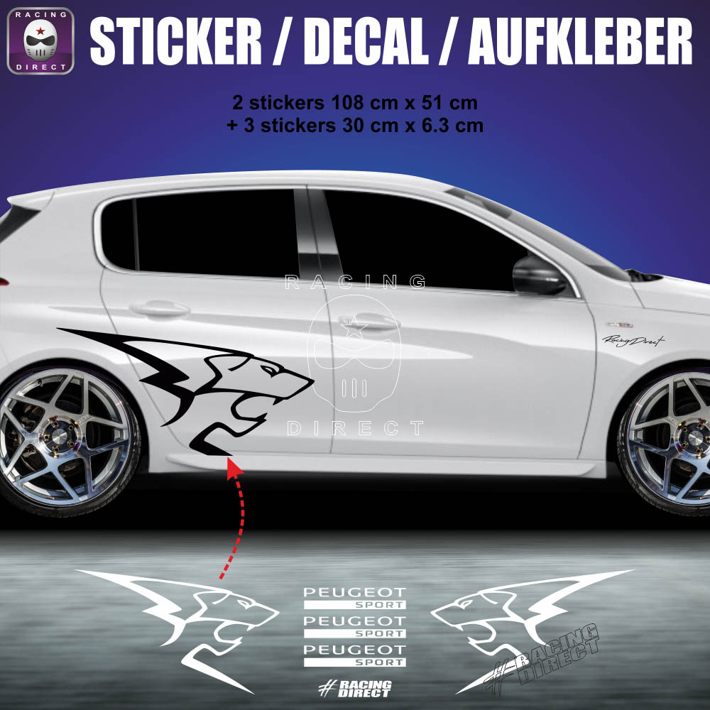 Dimension : 2 stickers 1080 x 510 mm + 3 PEUGEOT SPORT 300 mm x 65 mm