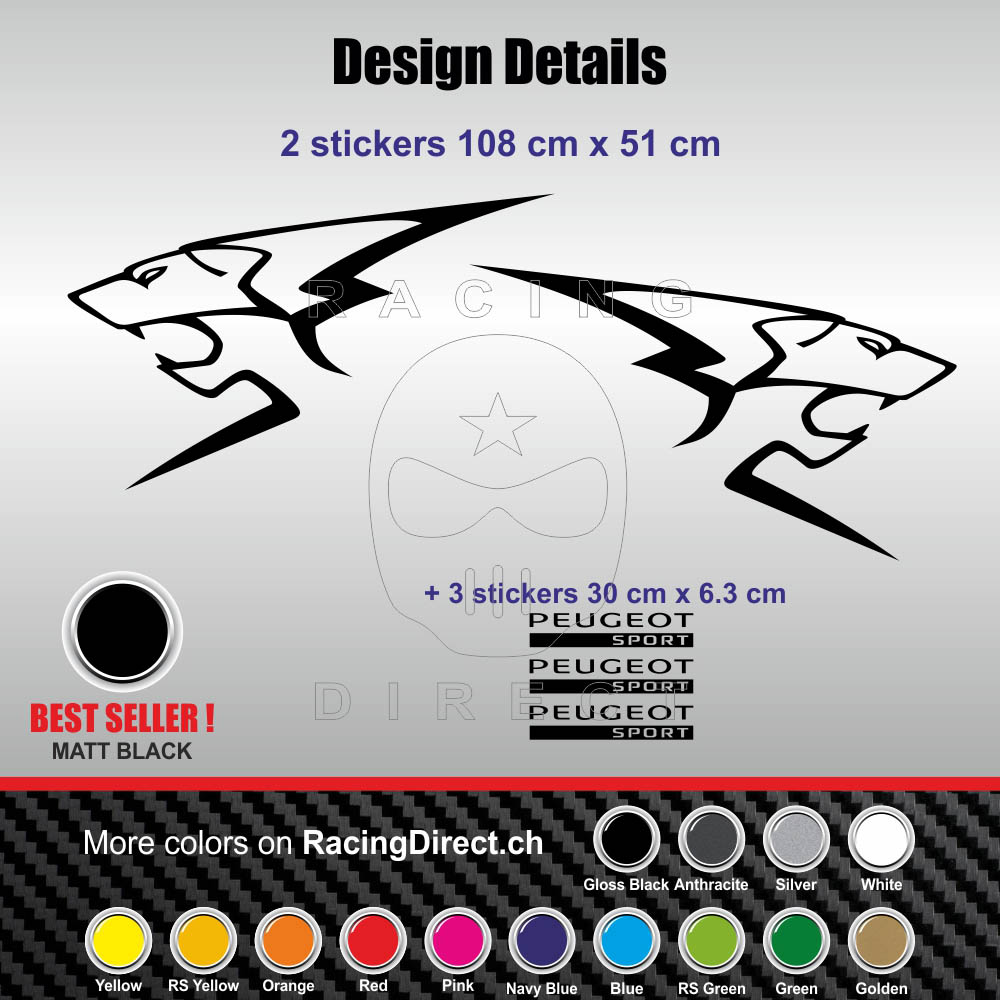 2 LION PEUGEOT SPORT sticker decal 108 cm PEUGEOT