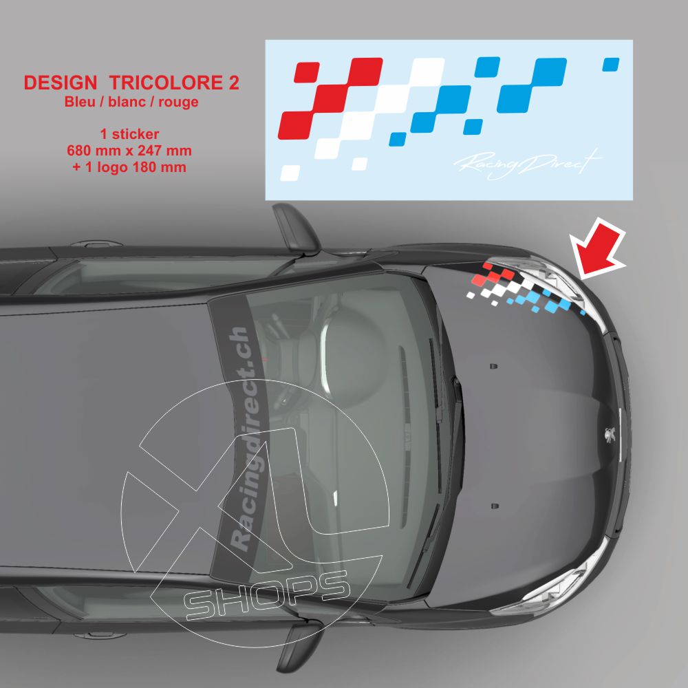 1 sticker PEUGEOT SPORT damiers tricolore capot moteur 68 cm