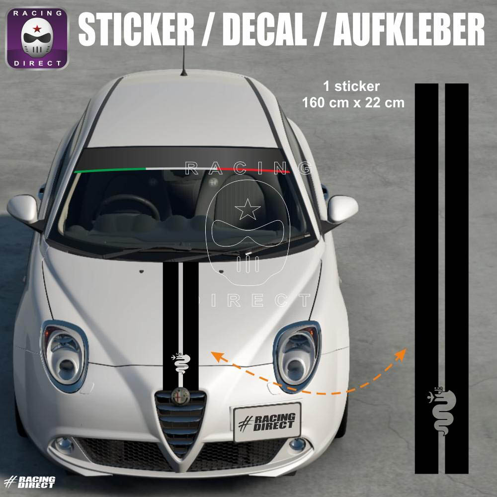 Sticker double bandes 160 cm pour capot ALFA ROMEO