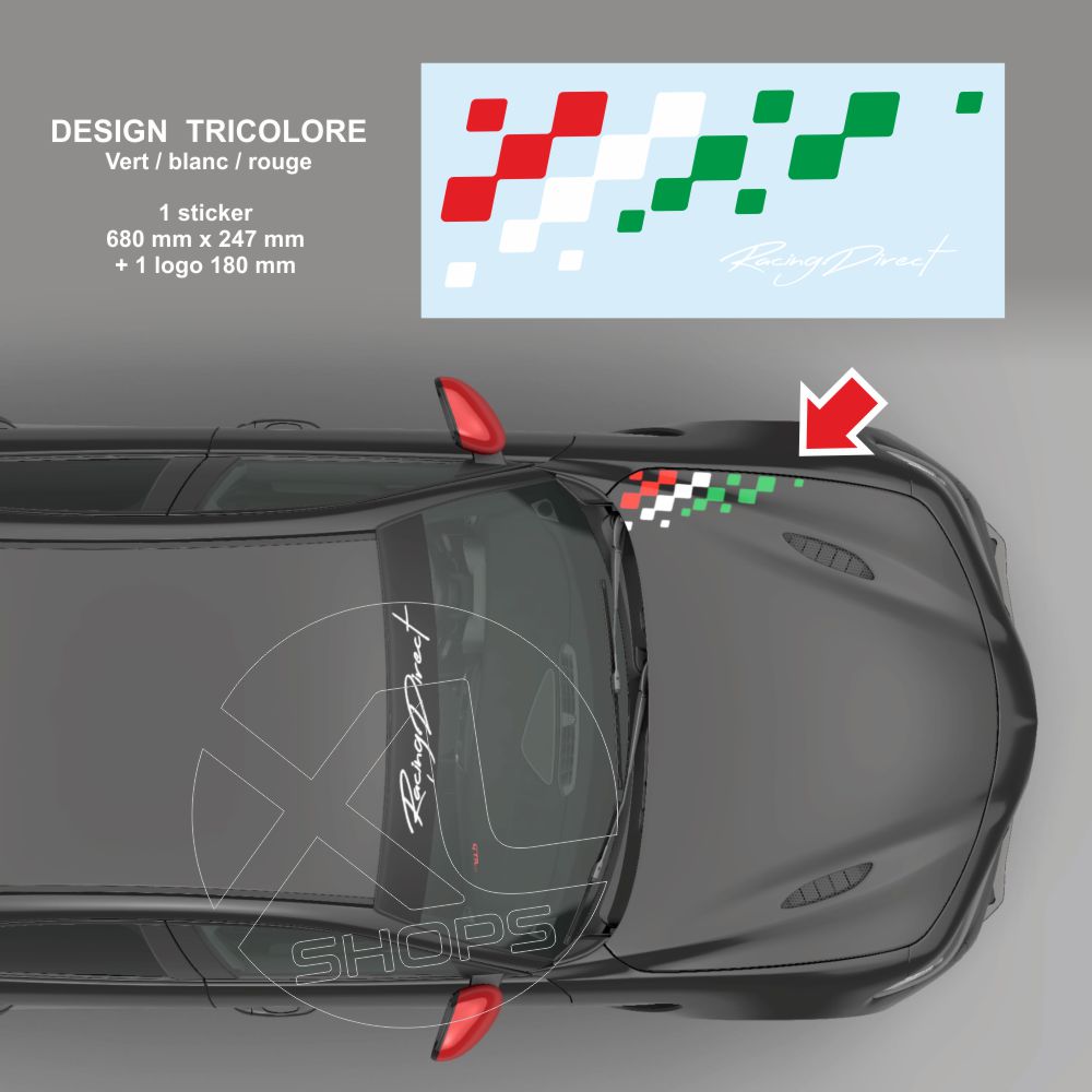 1 tricolour ALFA ROMEO chequered flag sticker decal for bonnet 68 cm