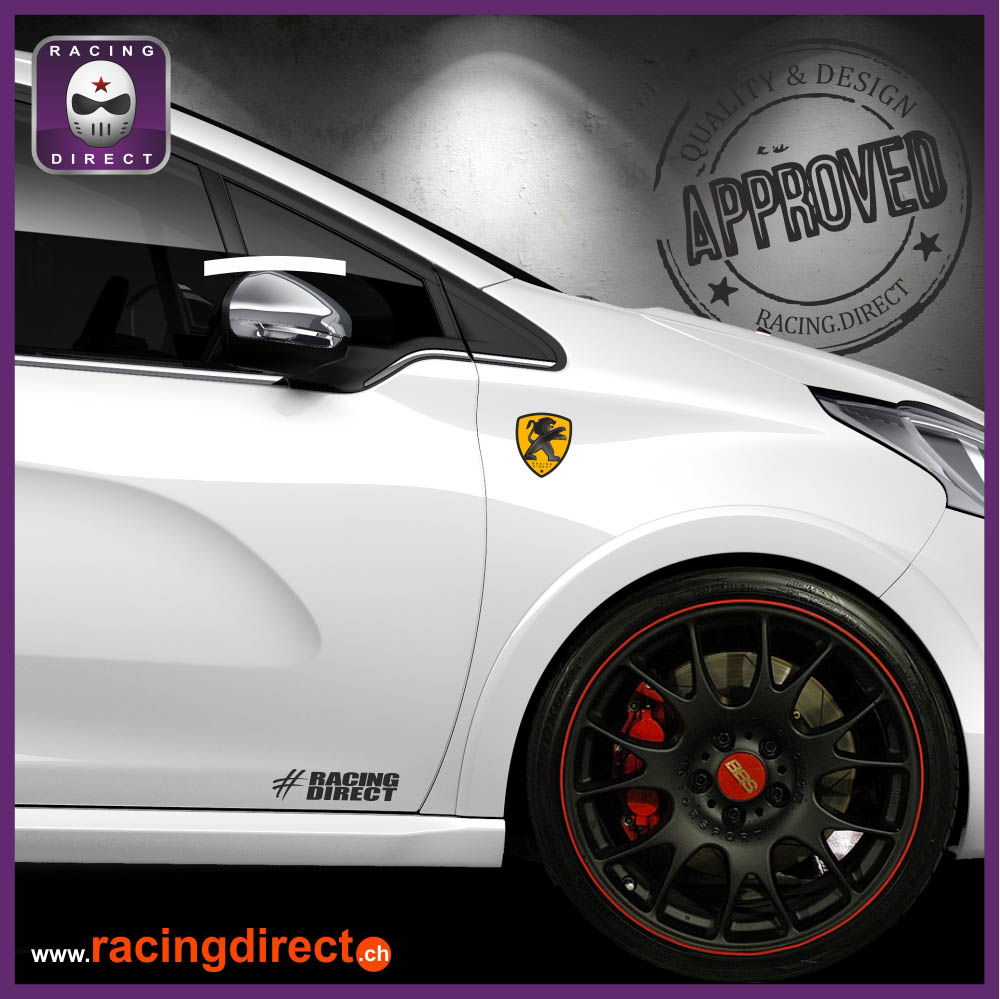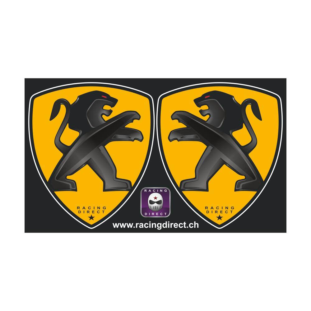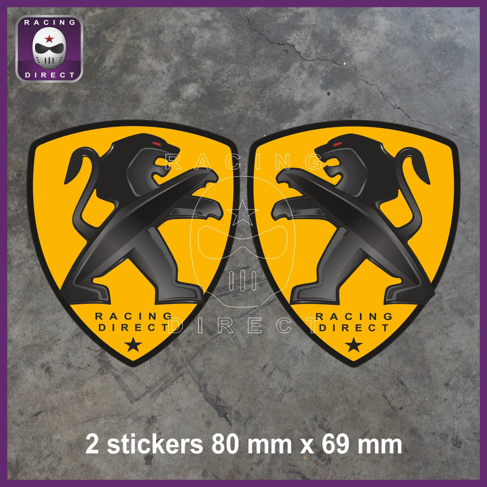 2 Peugeot Sport Stickers Black Lion on Yellow Background PEUGEOT