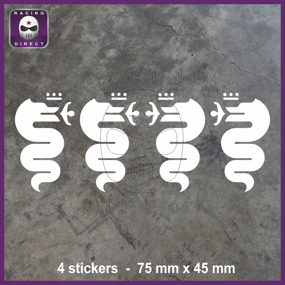 Ref. : 2804 Dimension : 4 stickers 75 x 45 mm Compatible : ALFA ROMEO Compatible Models : Mito Giulia Giulietta Stelvio Brera GT 147 156 159 GT GTV Spider