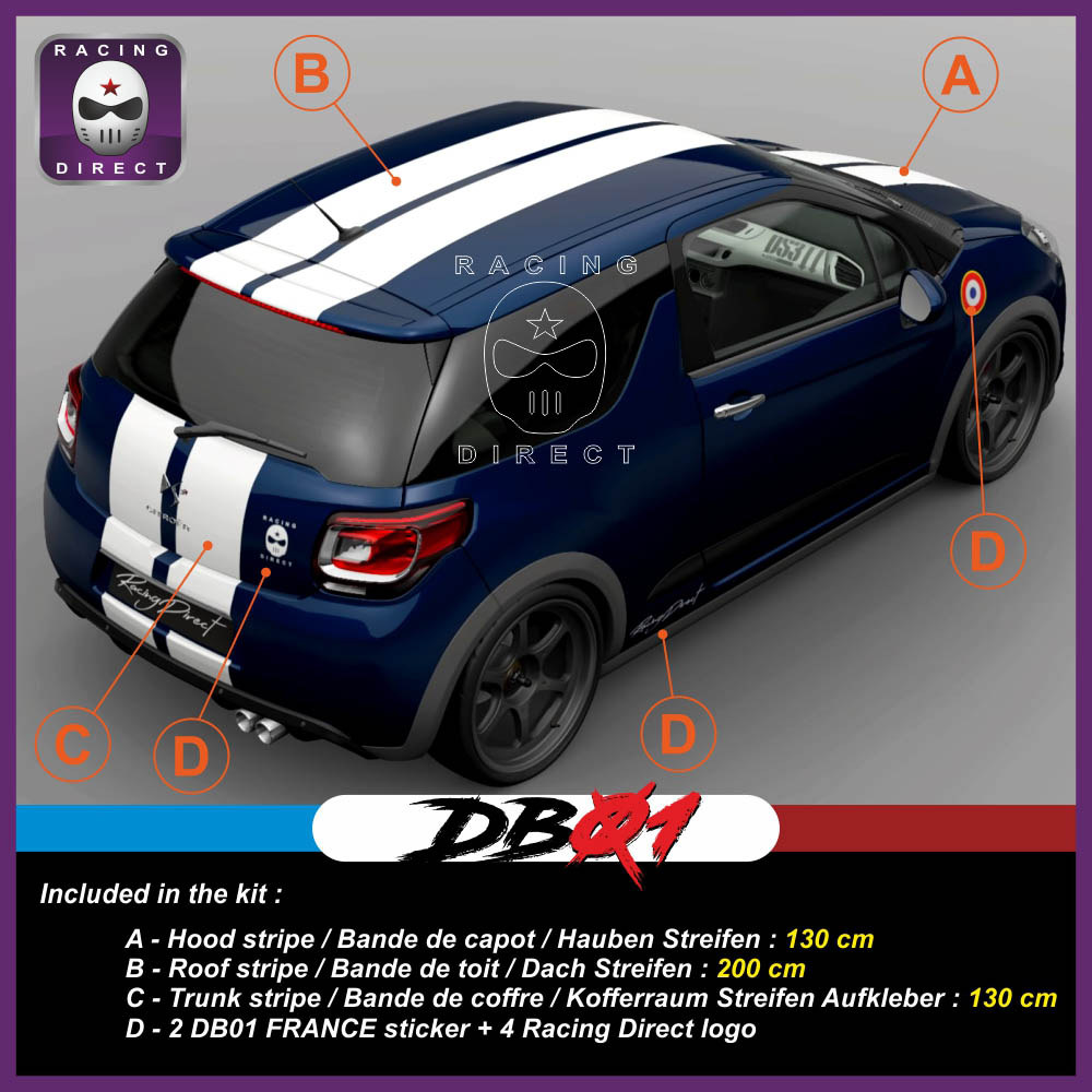 DB01 RAcing doble stripe hood roof and trunk sticker CITROEN