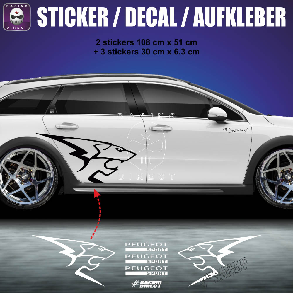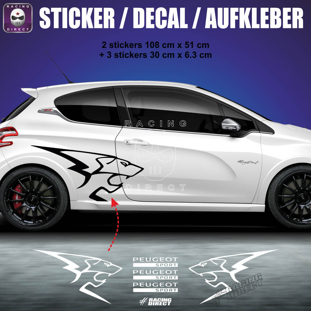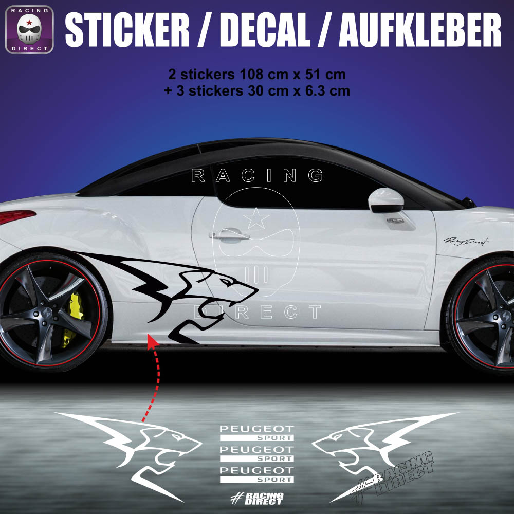 Dimension : 2 stickers 1080 x 510 mm + 3 PEUGEOT SPORT 300 mm x 65 mm