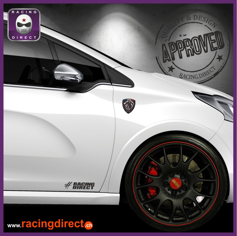 Lot de 2 sticker Lion Peugeot look carbone